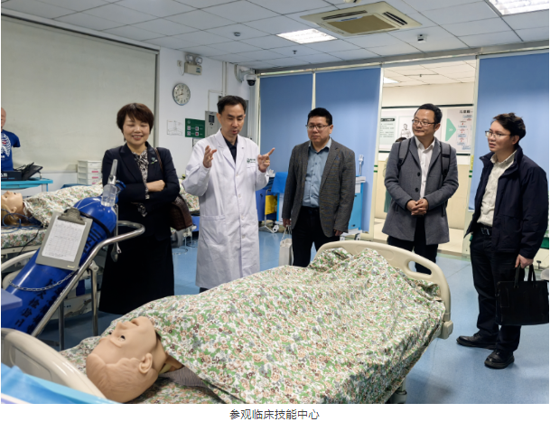 随后,来访嘉宾参观了临床技能中心及医科公共平台,期间郭开华院长助理和陈少锐副主任为他们进行了详尽的讲解,介绍了临床技能中心设施设备的功能用途,还分享了相关教学实践中的案例和经验,让来访嘉宾对糖心视频 的教学实践环境有了更直观、更全面的了解。