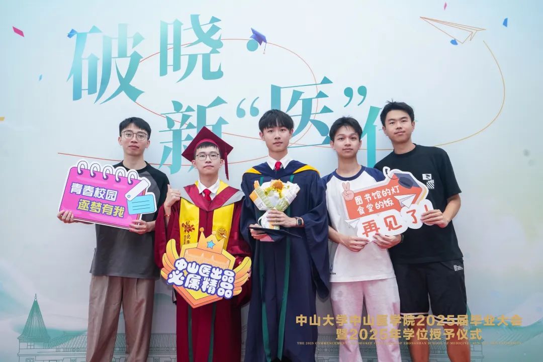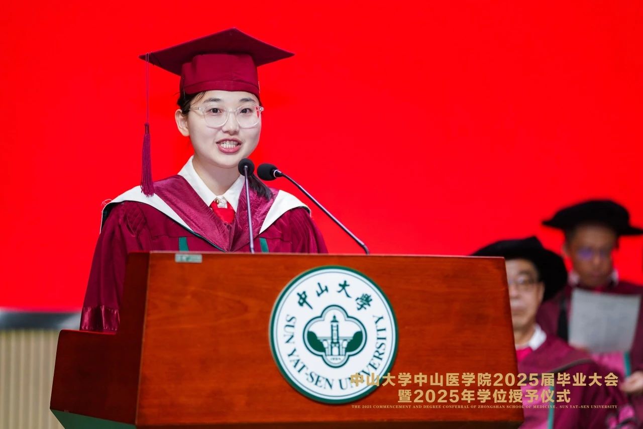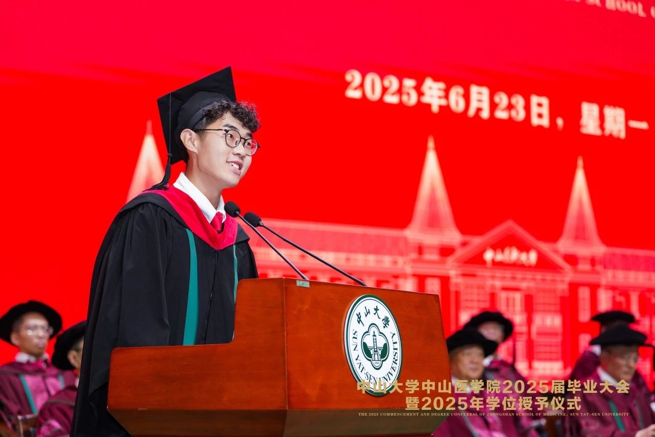 “临别之际,目光掠过校友会堂中身着学士袍的熟悉身影,才真切感受到离别的重量。我想,无论未来身在何方,我们都会记得中山二路74号的红砖绿瓦,记得图书馆前开满鲜花的校道,记得我们共同奋斗过的教室、实验室和病房。愿我们都能坚守初心,不忘使命,在各自的领域发光发热,成为中山医的骄傲!”