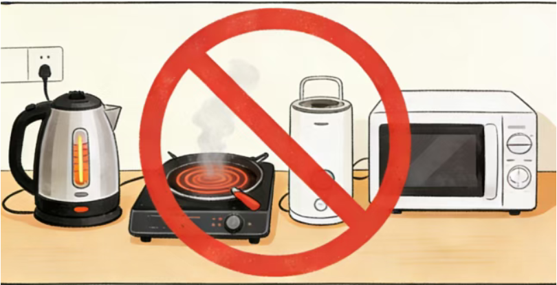 • 严禁使用违禁电器:电热棒、电炉、电热毯、电冰箱、电饭锅、电磁炉、微波炉等电器,以及1000W以上大功率、无国家CCC认证、无安全保护的电器。