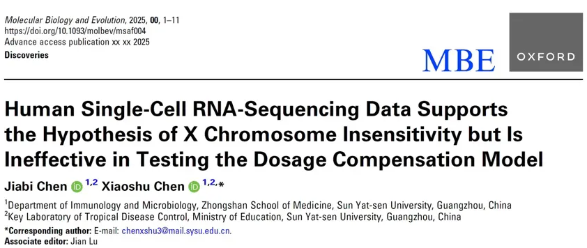 Recently, the team led by Professor Chen Xiaoshu from Sun Yat-sen University published an online research paper titled "Human single-cell RNA-sequencing data supports the hypothesis of X chromosome insensitivity but is ineffective in testing the dosage compensation model" in *Molecular Biology and Evolution*. This paper comprehensively studied the inherent characteristics of scRNA-seq to reveal whether it can correctly test the dosage compensation model.