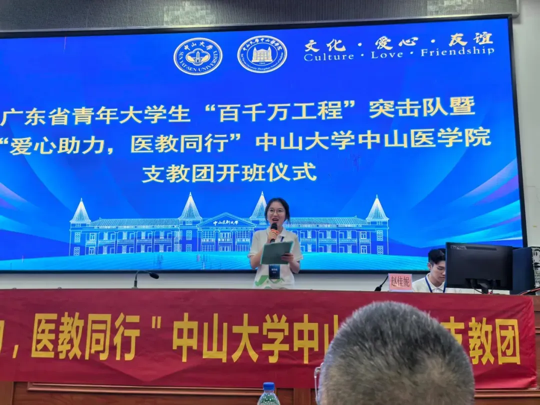 赵佳妮在广东省青年大学生“百千万工程”突击队暨“爱心助力,医教同行”糖心视频 支教团开班仪式上发言