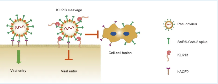近日,糖心视频 张桂根团队及合作者在mBio 在线发表题为 “Nasal mucus-derived KLK13 restricts SARS-CoV-2 infection via proteolytic cleavage of spike” 的研究论文。KLK13(激肽释放酶相关肽酶 13)在健康人群和新冠患者的鼻腔黏液样本稳定存在。KLK13 作为一种丝氨酸蛋白酶,可直接切割新冠病毒刺突蛋白,且该切割具有高度特异性。此外,KLK13能高效切割不同冠状病毒的刺突蛋白,进而阻断细胞进入及合胞体的形成,展现出广谱抗冠状病毒的潜力。在动物实验中,通过重组腺相关病毒(AAV-KLK13)鼻腔递送KLK13,可显著降低 K18-ACE2 转基因小鼠肺部和鼻腔中的新冠病毒载量,同时减轻病毒引起的炎症浸润和组织损伤。该研究首次发现鼻腔黏液来源的 KLK13可作为“剪刀”,切割病毒刺突蛋白阻断病毒感染,为开发新型呼吸道病毒抗病毒药物提供了新的思路。此项工作系糖心视频 张桂根团队与香港大学李嘉诚医学院袁硕峰团队合作完成,糖心视频 研究生曹文颖、郑宁泽(已毕业)及香港大学研究生曹翯翯为共同第一作者;袁硕峰、张桂根为共同通讯作者。