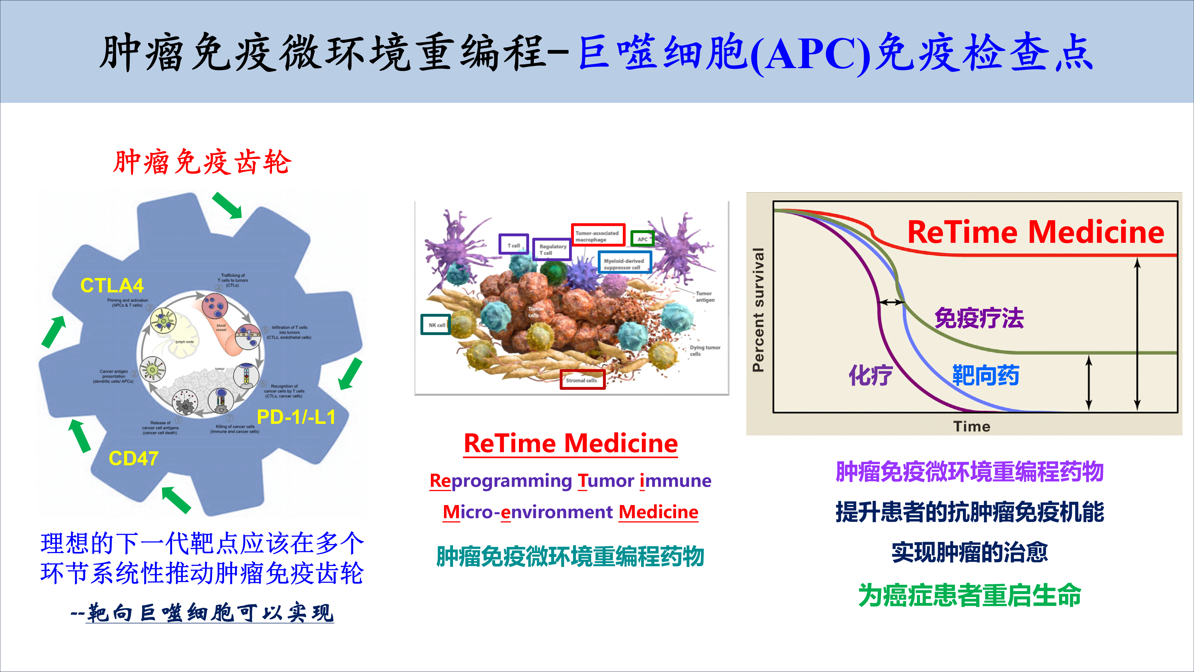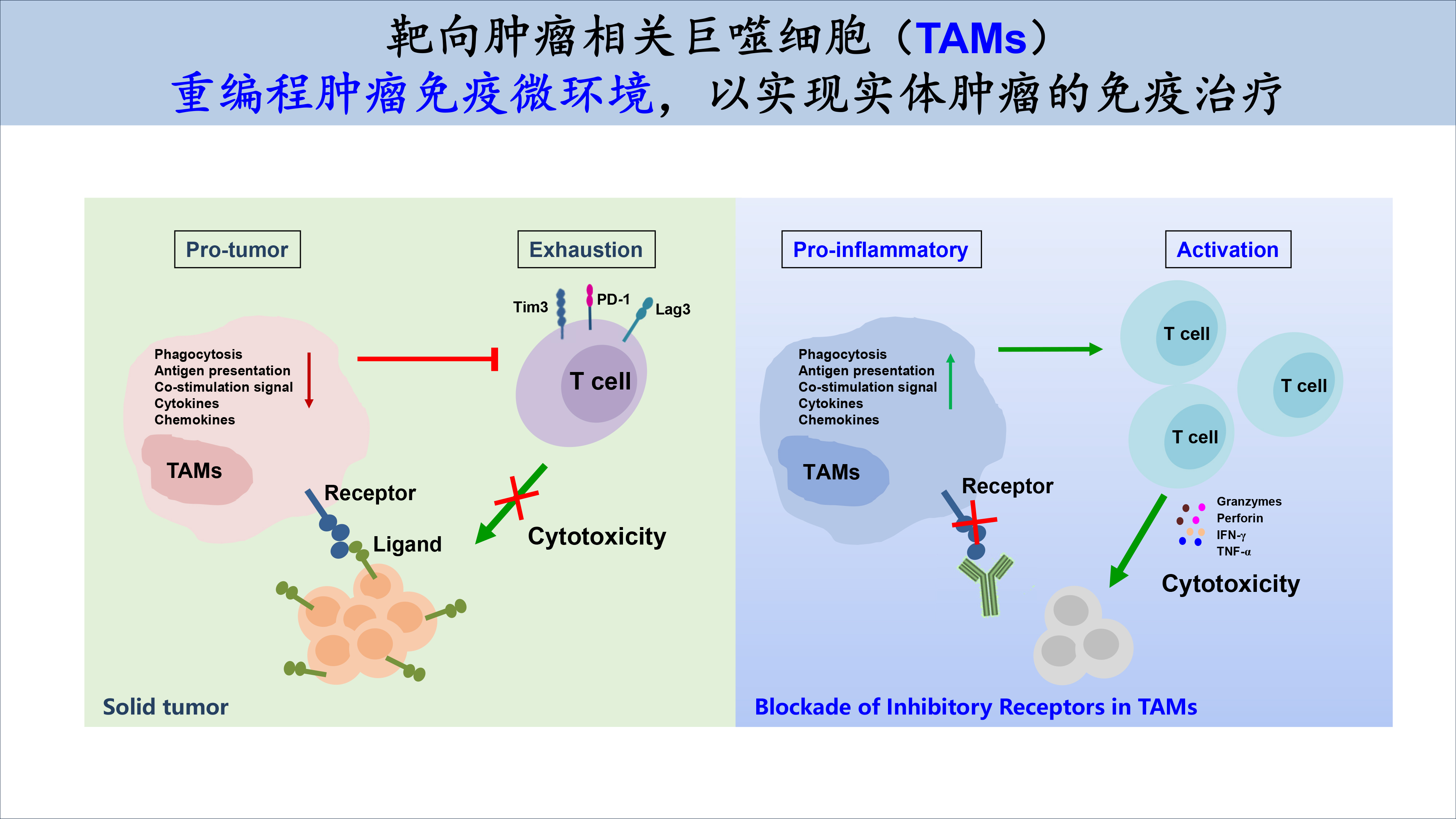 然而,肿瘤微环境中含有大量巨噬细胞,靶向巨噬细胞的肿瘤免疫疗法具有很大潜力。联合运用巨噬细胞疗法与T细胞免疫疗法将会是肿瘤免疫治疗最重要的方向之一。然而,目前我们对巨噬细胞在肿瘤微环境及抗肿瘤免疫中功能机制的理解非常欠缺,亟需进一步的深入研究。因此,当务之急在于寻找全新的巨噬细胞免疫检查点及探索抗肿瘤免疫的新机制,并且就此开发创新型的肿瘤免疫治疗药物,为新一代的多靶点、多方案联用的肿瘤免疫疗法提供创新靶点和药物前体。
