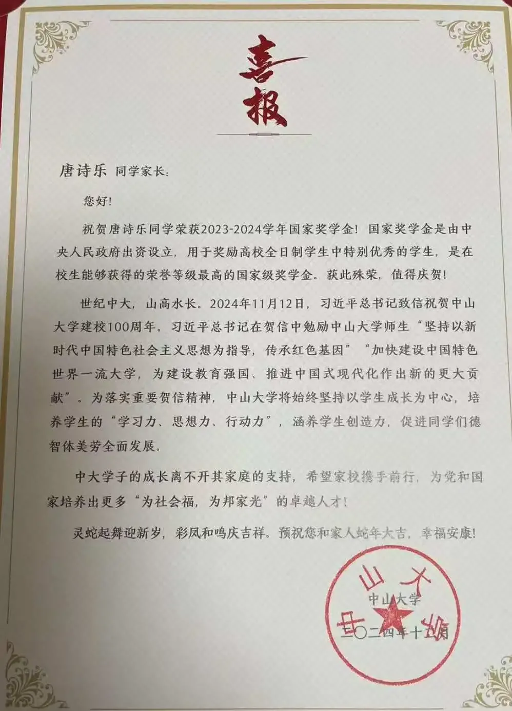 唐诗乐的故事,是对“救人救国救世,医病医身医心”这一医学初心的诠释,她以坚定的信念和扎实的行动,践行着医者的使命与担当。她不仅在学术领域取得优异成绩,更在社会实践中展现医学生的温度与力量,不断发光发热,传递正能量与温暖。