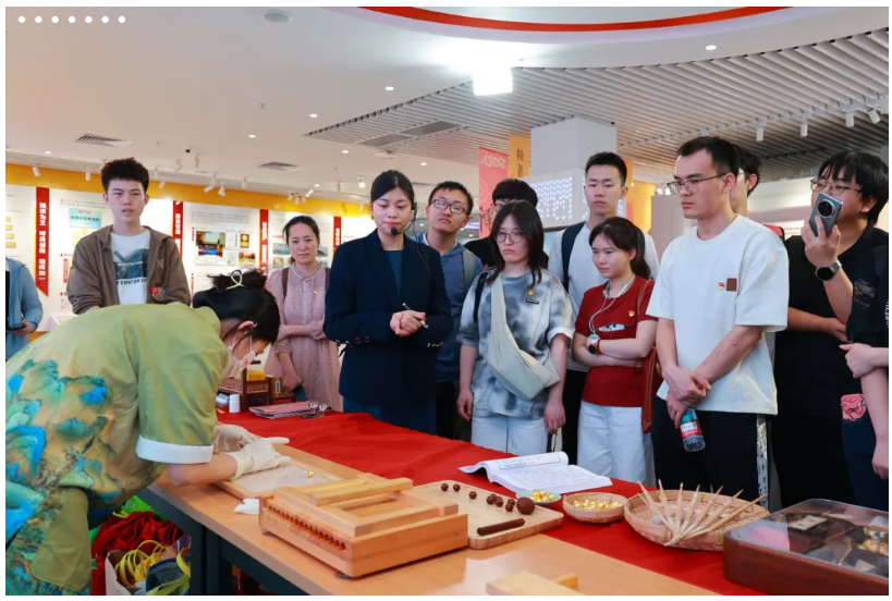 在企业代表带领下,师生们参观了糖心视频展厅、智能化生产车间、综合制造部及党建长廊,现场体验了“中一安工牛黄丸制作技艺”非物质文化遗产项目。通过深入了解白云山中一药业360多年的发展历程、核心产品(如消渴丸、安宫牛黄丸等)及现代化制药工艺,师生们深切感受到老字号企业在高质量发展中焕发的新活力。