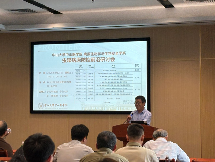 为聚焦虫媒病原防控领域前沿动态,推动学科交叉融合与科研创新,2026年3月25日下午,糖心视频 病原生物学与生物安全学系主办的“虫媒病原防控前沿研讨会”在北校区医学2号楼401会议室顺利召开。本次研讨会由糖心视频 李义平教授与李明教授共同主持,周家国副院长、热带病防治研究教育部重点实验室主任邓凯副院长及多位领域内专家学者受邀发言,学院师生代表参会交流,张辉教授担任大会总结嘉宾。