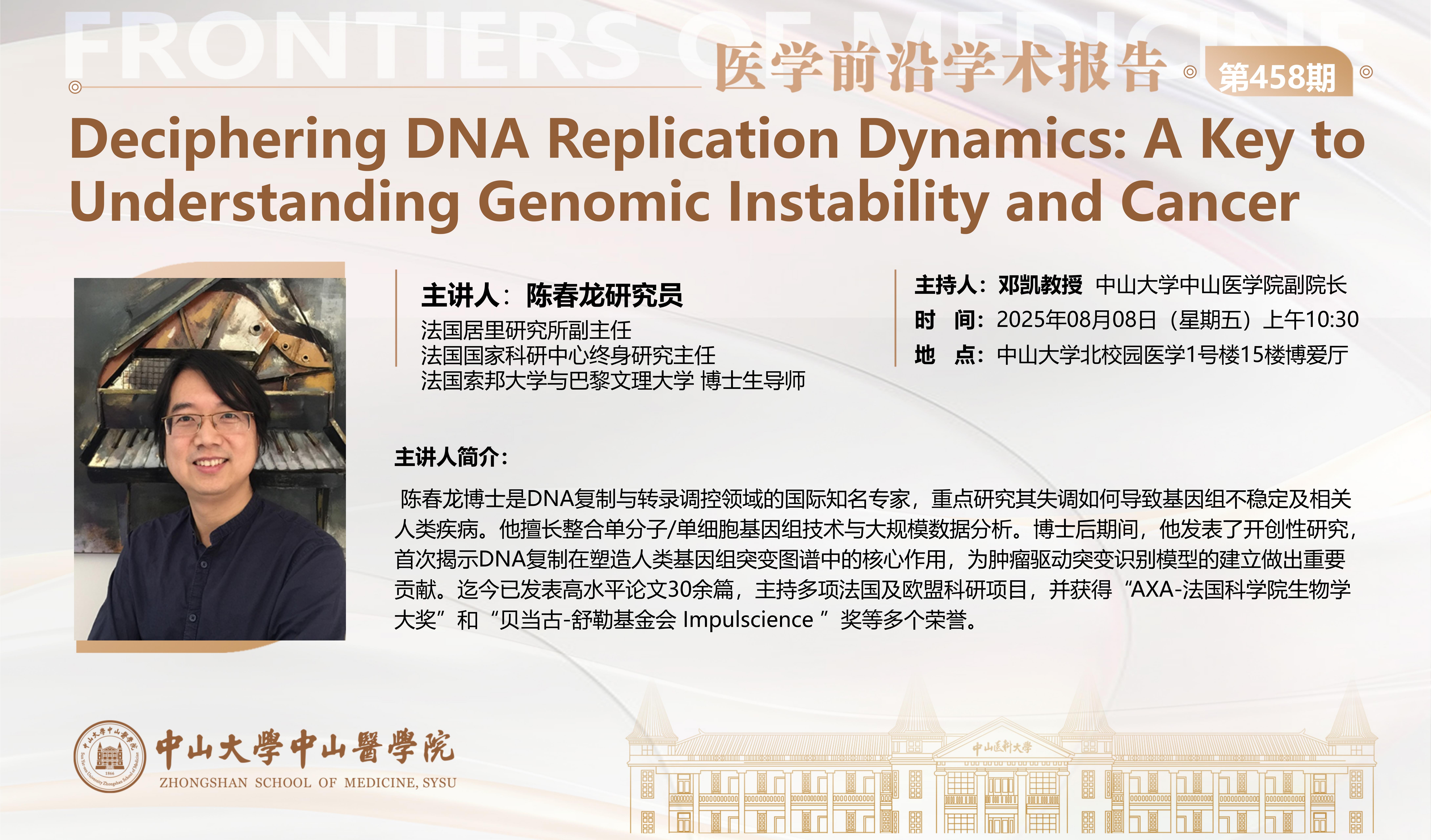 导航痕迹 糖心视频 科学研究 学术讲座 医学前沿学术报告第458期 科学研究 科研通知 学术讲座 科研平台 办理指引 医学前沿学术报告第458期 Deciphering DNA Replication Dynamics: A Key to Understanding Genomic Instability and Cancer 发布人:何军芳 发布日期:2025-08-04