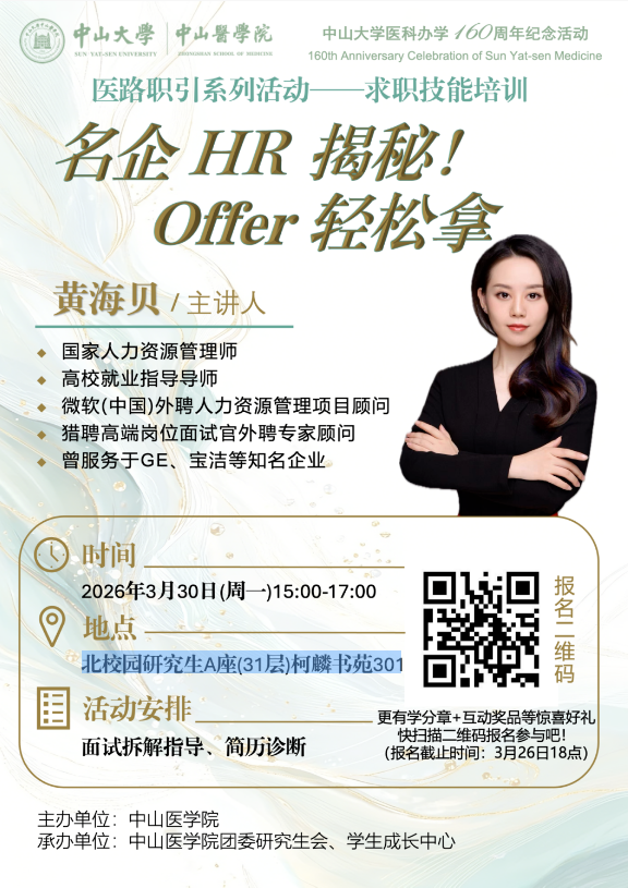 导航痕迹 糖心视频 科学研究 学术讲座 医路职引系列活动--求职技能培训 名企HR揭秘!Offer轻松拿 科学研究 科研通知 学术讲座 科研平台 办理指引 医路职引系列活动--求职技能培训 名企HR揭秘!Offer轻松拿 发布人:张玉琦 发布日期:2026-03-30