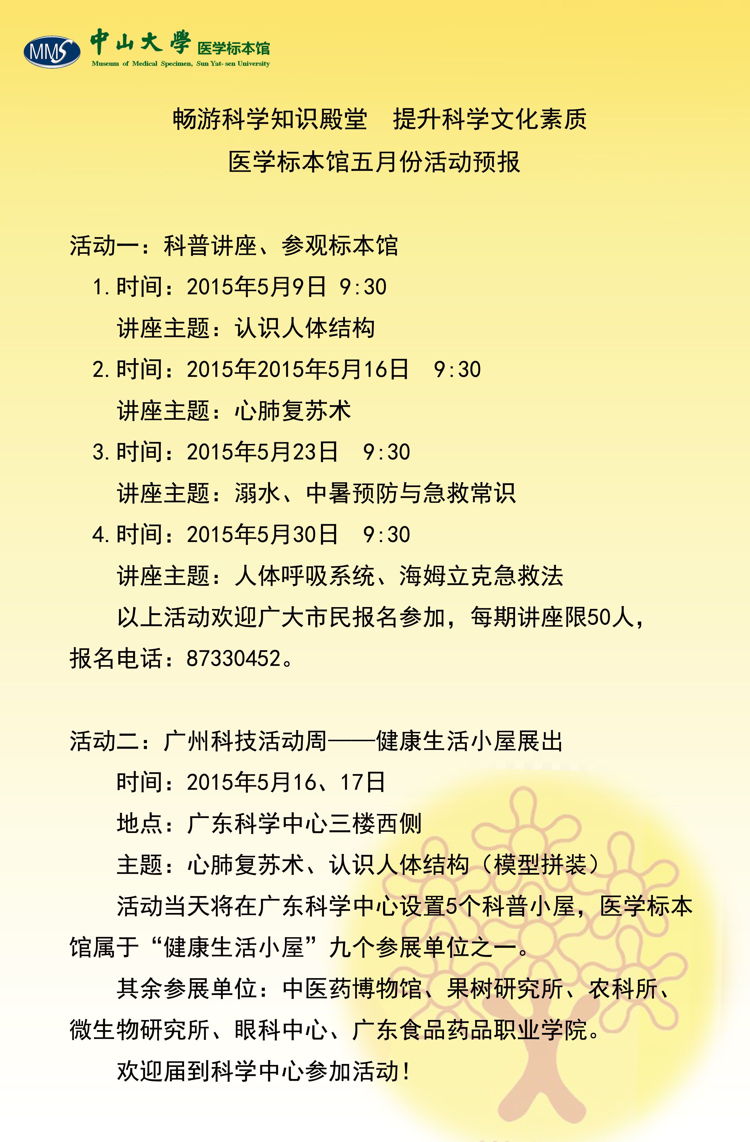 导航痕迹 糖心视频 医学标本馆五月份科普活动预报 医学标本馆五月份科普活动预报 畅游科学知识殿堂 提升科学文化素质 主题 畅游科学知识殿堂 提升科学文化素质 活动时间 2015年05月09日 09:30 - 2015年05月30日 09:30 活动地址 糖心视频 医学标本馆