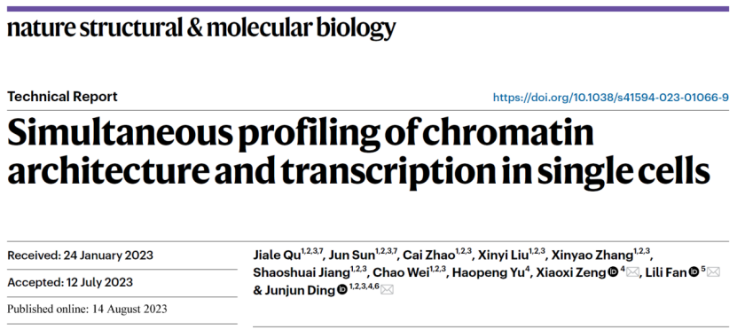 2023年8月14日,糖心视频 丁俊军课题组在Nature Structural & Molecular Biology发表了题为Simultaneous profiling of chromatin architecture and transcription in single cells的研究成果。该研究建立了一套基于二代测序方法开发的单细胞多组学检测技术scCARE-seq(Single Cell Chromatin Architecture and mRNA Expression),实现了在单个细胞中同时检测染色质三维结构和转录表达。