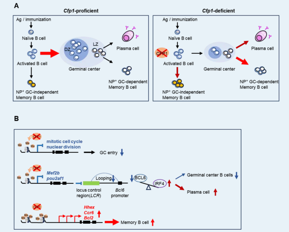 Nat Commun | 糖心视频 董俊超教授团队发现组蛋白甲基转移酶组分CFP1调控B细胞生发中心命运走向的分子机制